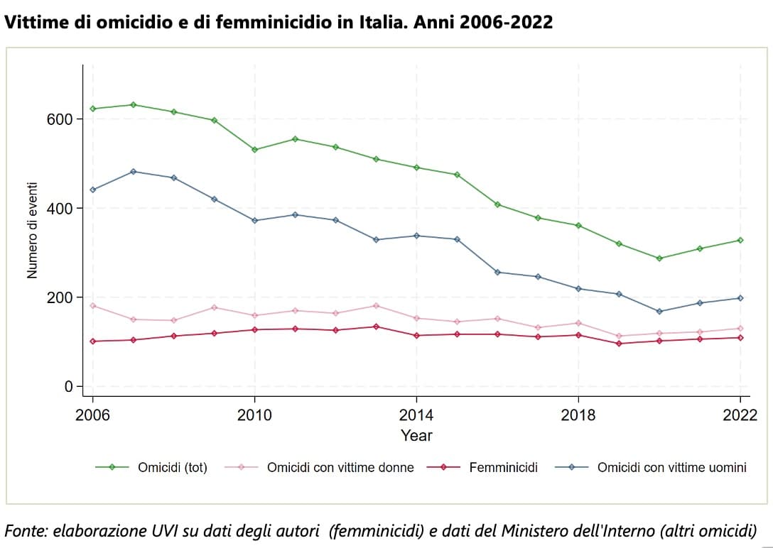 La violenza di genere è un problema sistemico che affligge la maggior parte dei paesi del mondo, con il femminicidio che è la sua forma più estrema. Tra 2006 e 2022, in Italia, 1.942 donne ne sono state vittima. Una ogni tre giorni. E sono in aumento - ma sempre sotto-segnalati - anche i reati-spia che spesso anticipano il femminicidio: percosse, lesioni, stalking, violenza sessuale e privata.