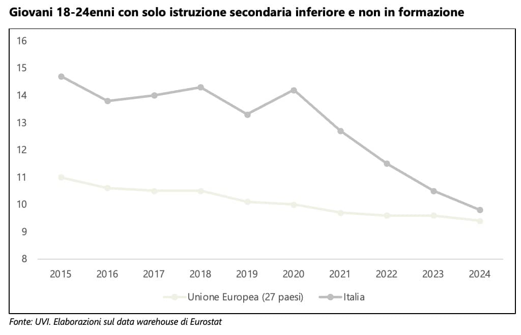 The school dropout rate has historically been one of the critical issues in the Italian education system. Today, the percentage of early school leavers has decreased, to just above the European average (9.8% compared to 9.4%). However, social inequalities still weigh heavily: children of parents with low income and low levels of education, particularly in the South and on the islands, are 15 times more likely to drop out of school than children of graduates (23.9% compared to 1.6%).