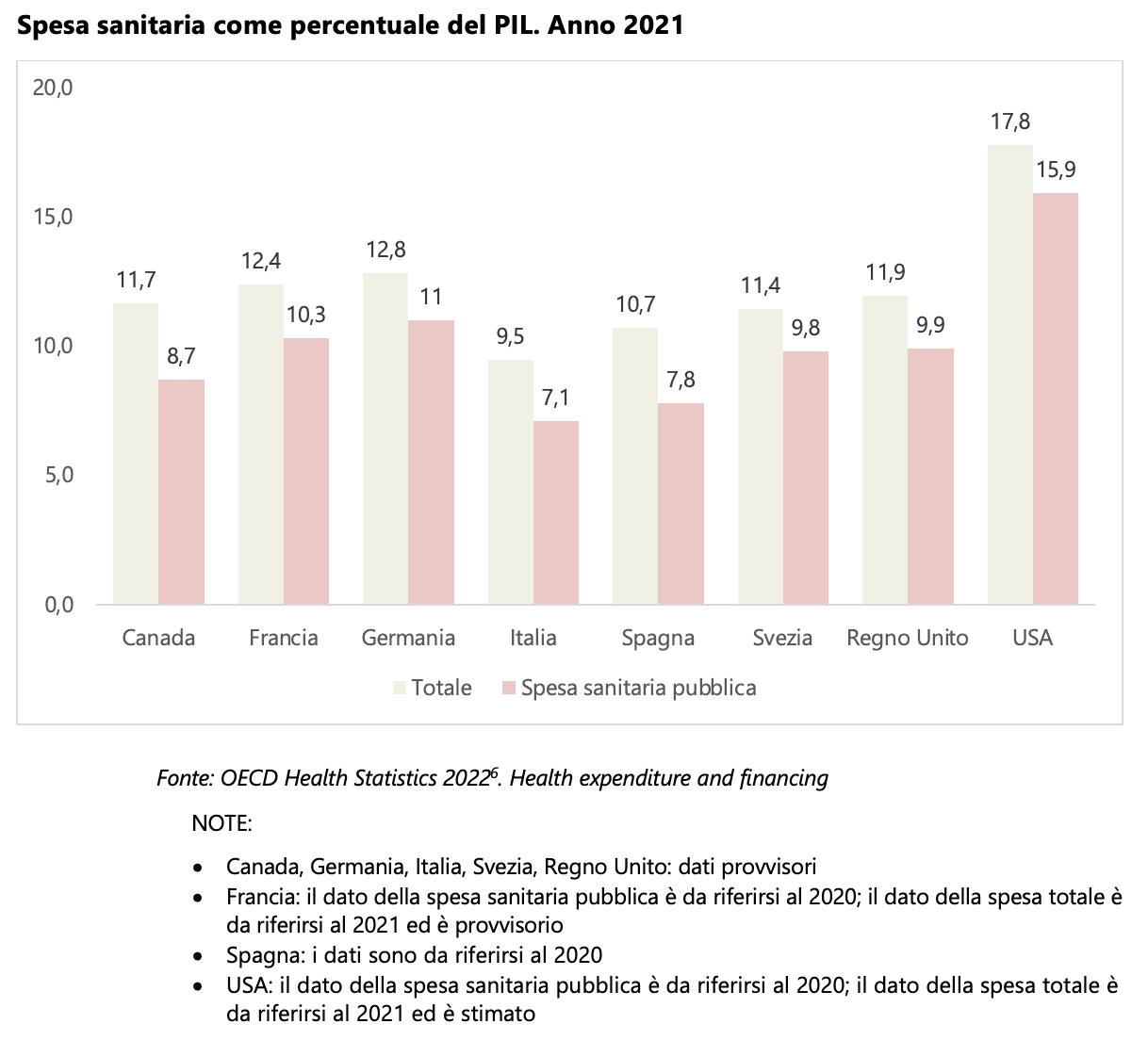 Con una spesa sanitaria pubblica pari al 7,1% del PIL, l'Italia nel 2020 risultava terza, fra i Paesi europei comparati, per numero di posti letto ospedalieri (3,19 ogni 1000 abitanti), e faceva registrare la più bassa disponibilità di strutture residenziali destinate agli anziani. Altre classifiche - dall'aspettativa di vita alla nascita (83 anni) all'aspettativa di vita in salute (71,9 anni) - ci vedono al vertice. Merito anche degli stili di vita.